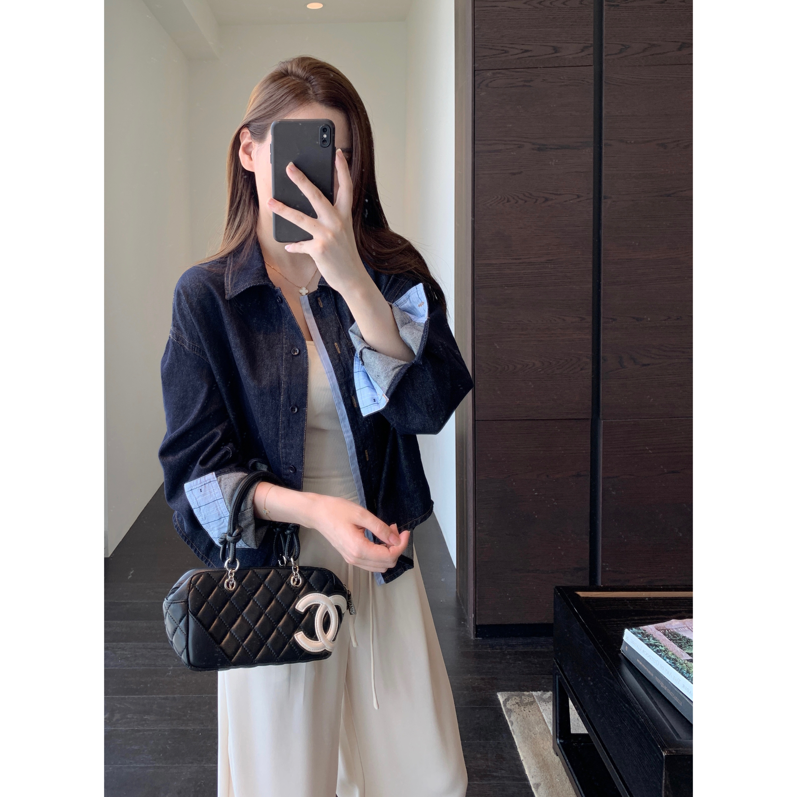 衬衫 Vavu水洗牛仔长袖 贝壳扣设计感贴袋衬衣薄外套 口袋可挂件