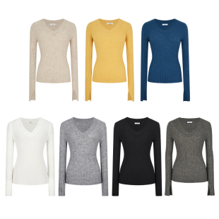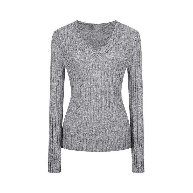 MosesQueen魔西女王灰色v领针织打底衫 上衣 女春秋冬内搭毛衣长袖