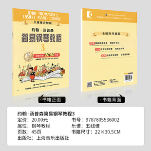 小汤姆森简易钢琴教程3约翰汤普森钢琴初学者入门教程书儿童钢琴书籍初步教材零基础0基础简谱曲谱五线谱视频教学 小汤3 正版 包邮