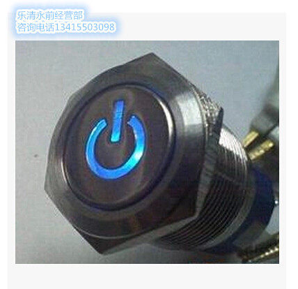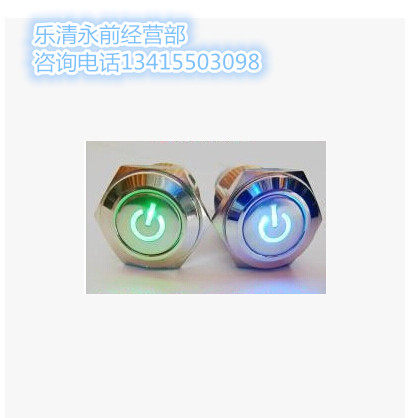 蓝12V 红 天使眼1 带电源符号灯绿 金属按钮带灯开关16mm自锁式