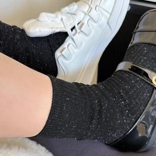 袜say 女袜日系纯色银丝坑条肌理中筒袜miu系羊毛堆堆袜 秋冬新款