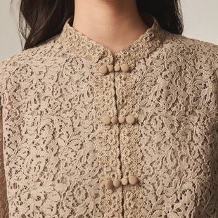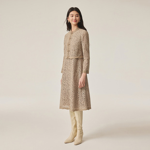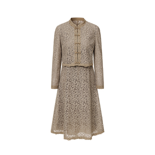 假两件裙装 VGRASS新中式 千金感轻法式 新款 蕾丝羊毛连衣裙冬季