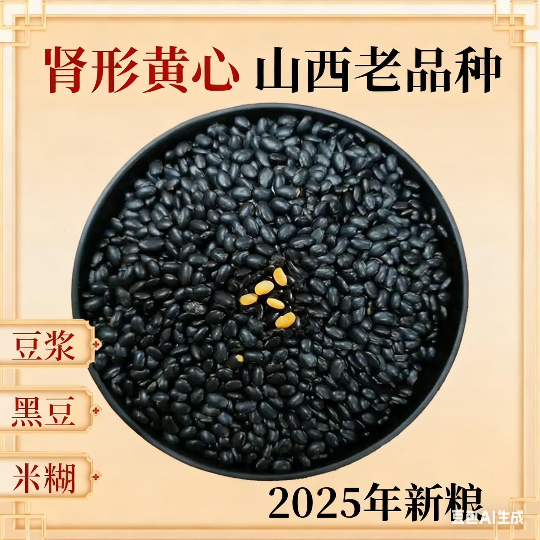 黄心黑豆5斤 2025年新货老品种农家自种黄芯肾型形黑豆打豆浆专用