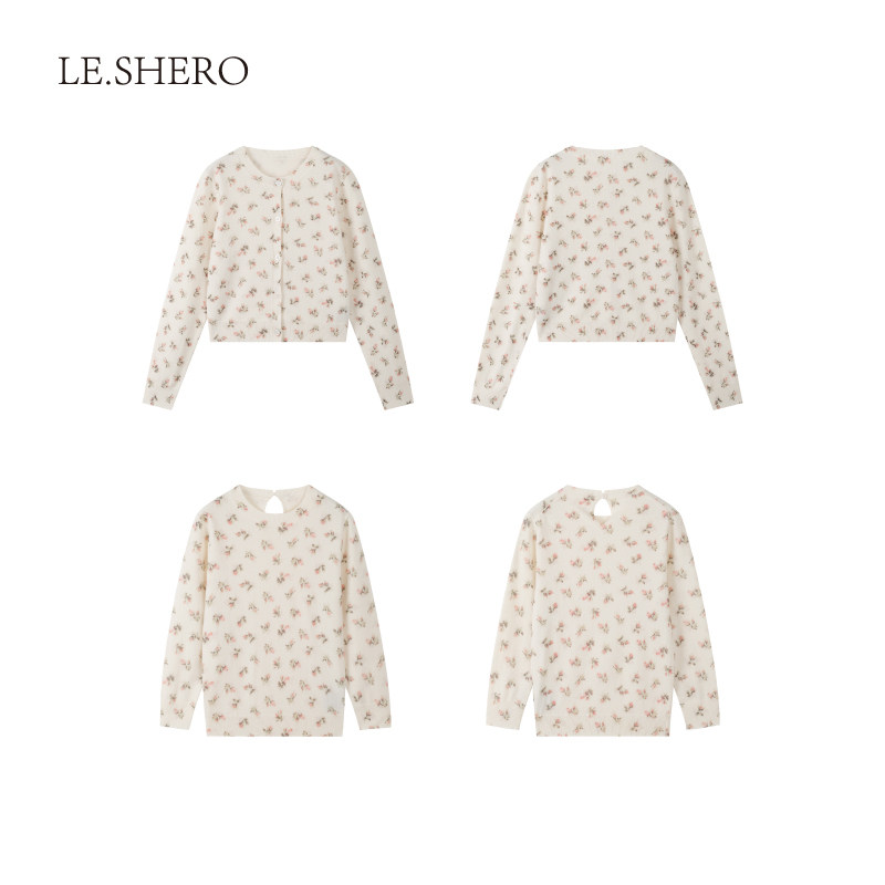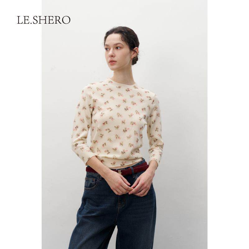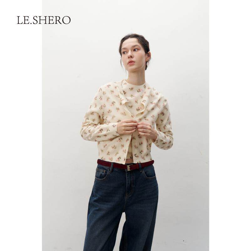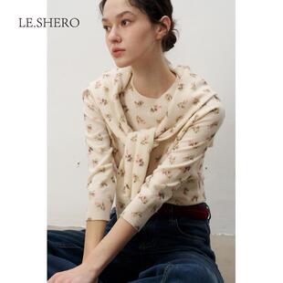 外穿 慵懒印花纯羊毛上衣女开衫 LE.SHERO 赵露思哈妮克孜同款