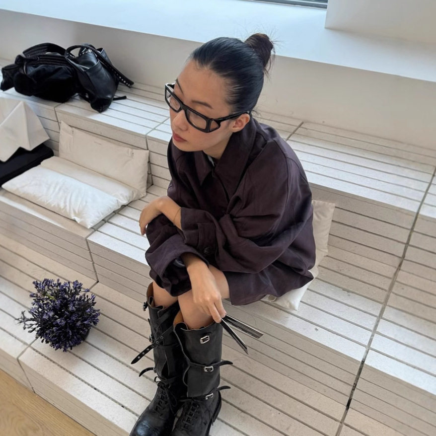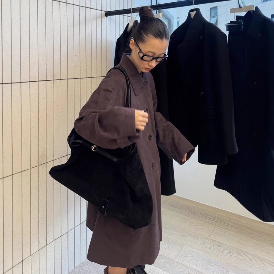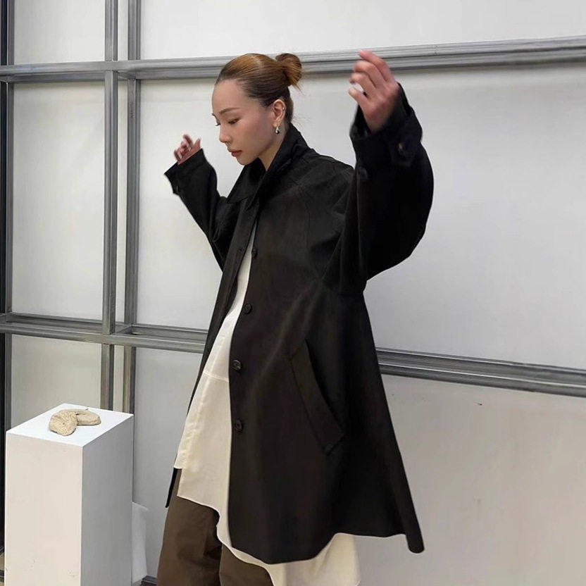 皮衣风衣外套 韩国东大门纯色气质翻领中长款 low classic现H26春款