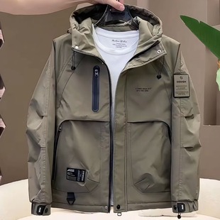 潮牌宽松连帽工装 2025流行时尚 夹棉夹克冲锋衣 新款 棉服外套男冬季