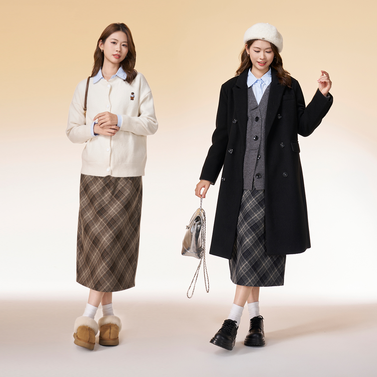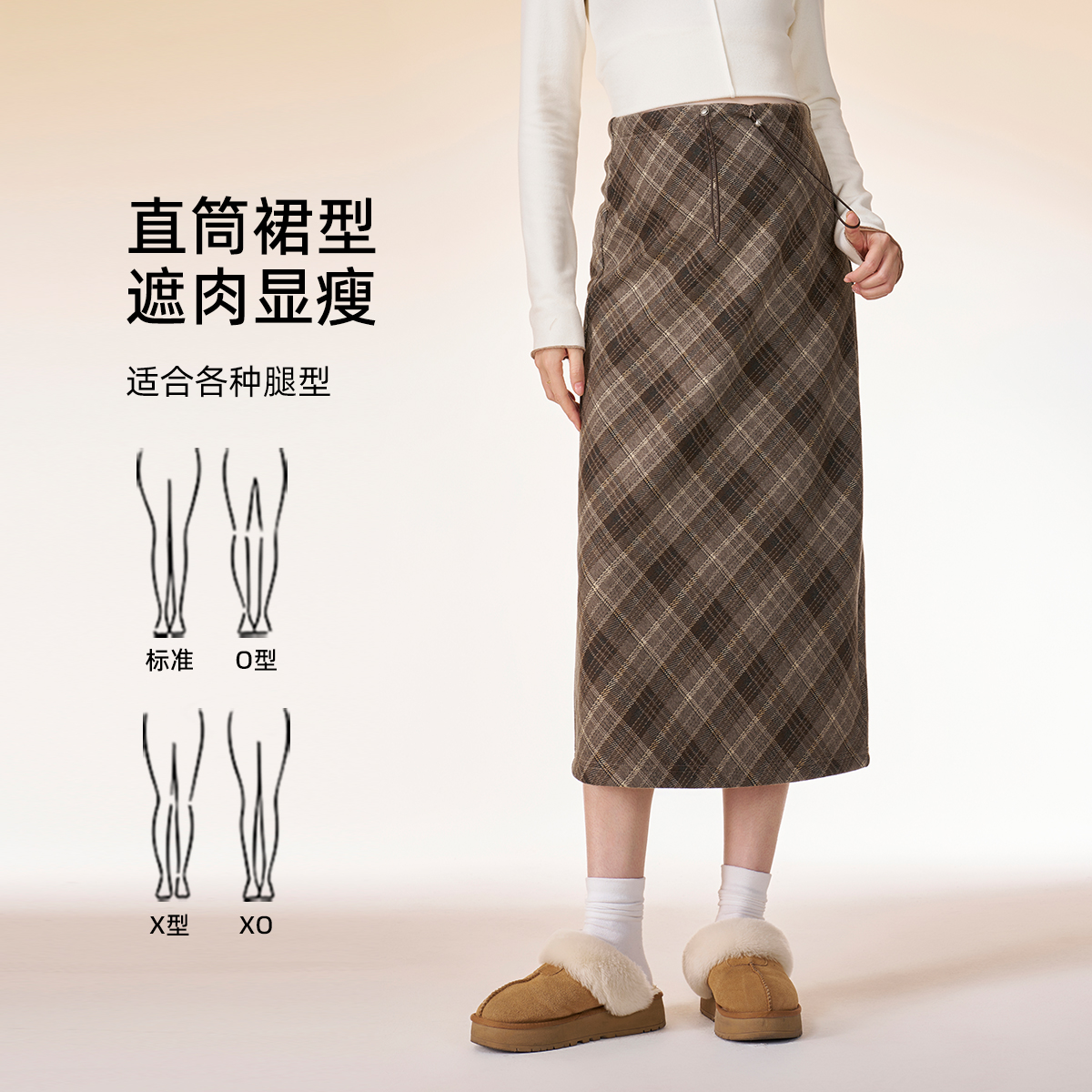 冬装 孕妇半身裙秋冬季 加绒加厚无托腹高腰格子包臀开叉直筒裙长款