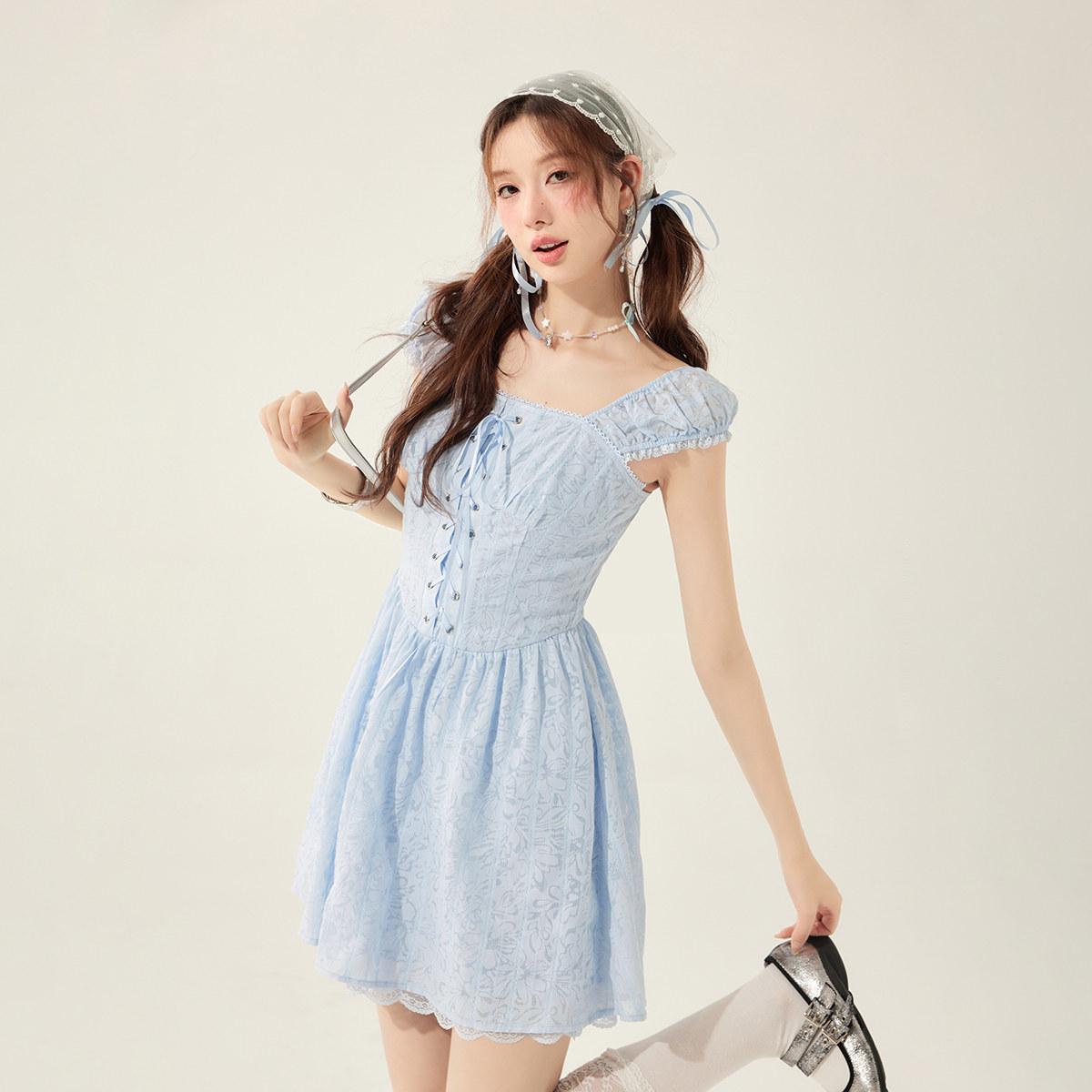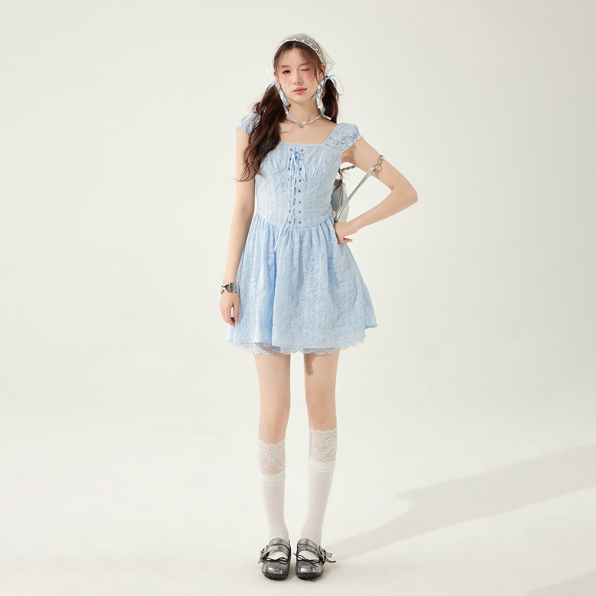 CRAWFISH甜美小清新蕾丝绑带背心连衣裙少女感初恋公主娃娃裙