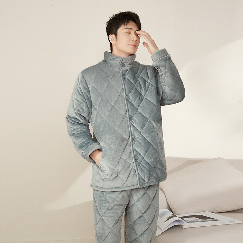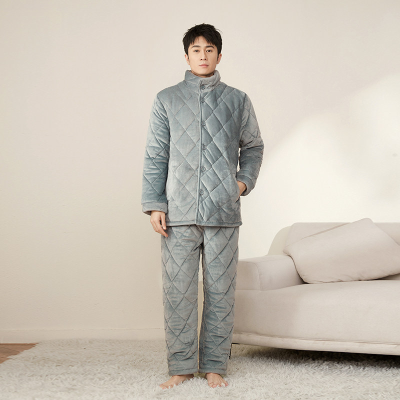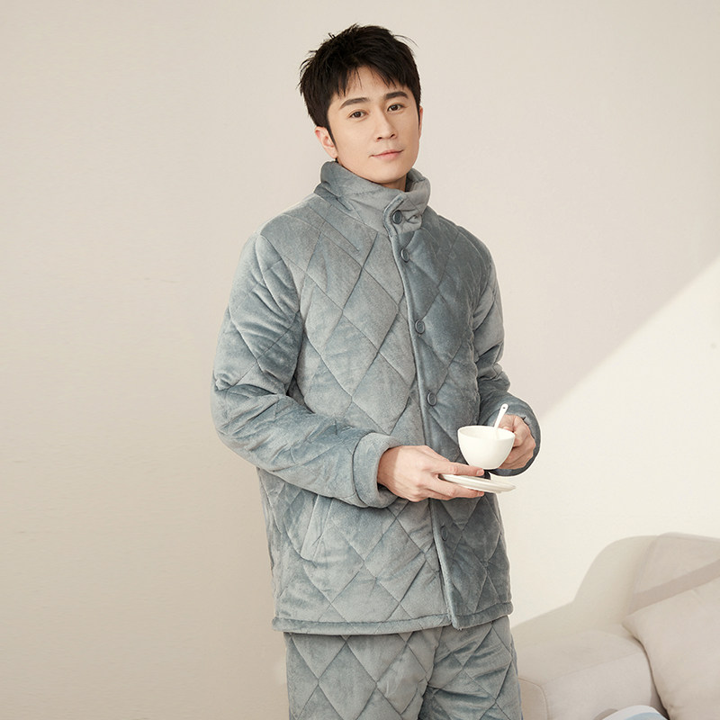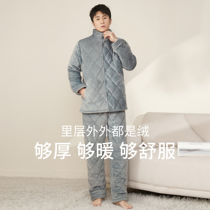 冬季 保暖睡衣男款 珊瑚绒家居服套装 男士 三层夹棉加绒加厚2025新款