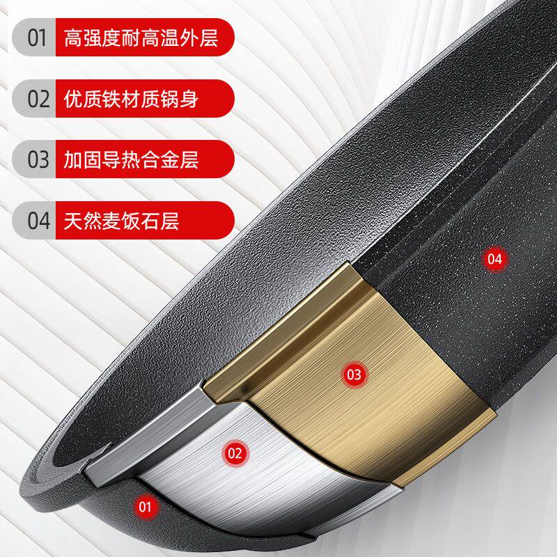 麦饭石煎锅不粘锅多功能平底锅无油烟煎饼锅家用煤气电磁炉通用