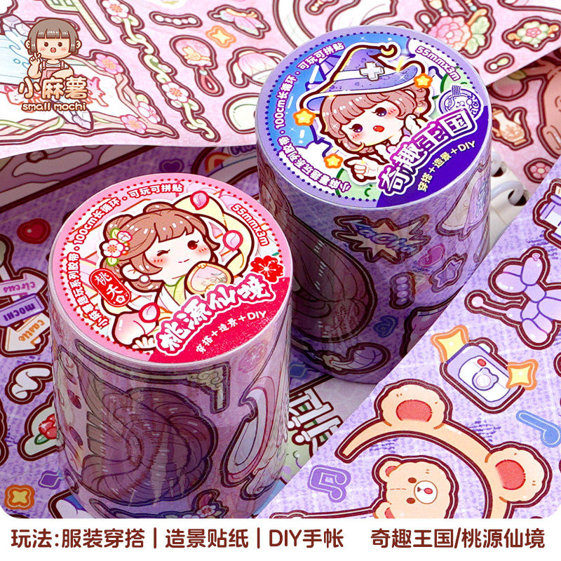 手账贴纸 饰小图案换装 小麻薯新款 胶带桃源仙境奇趣王国手帐素材装