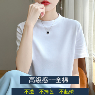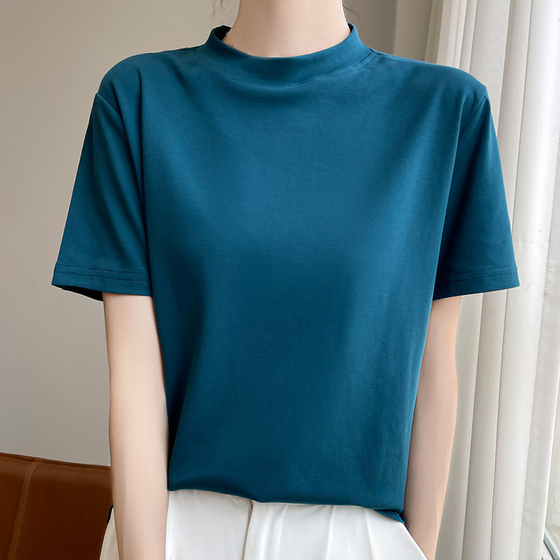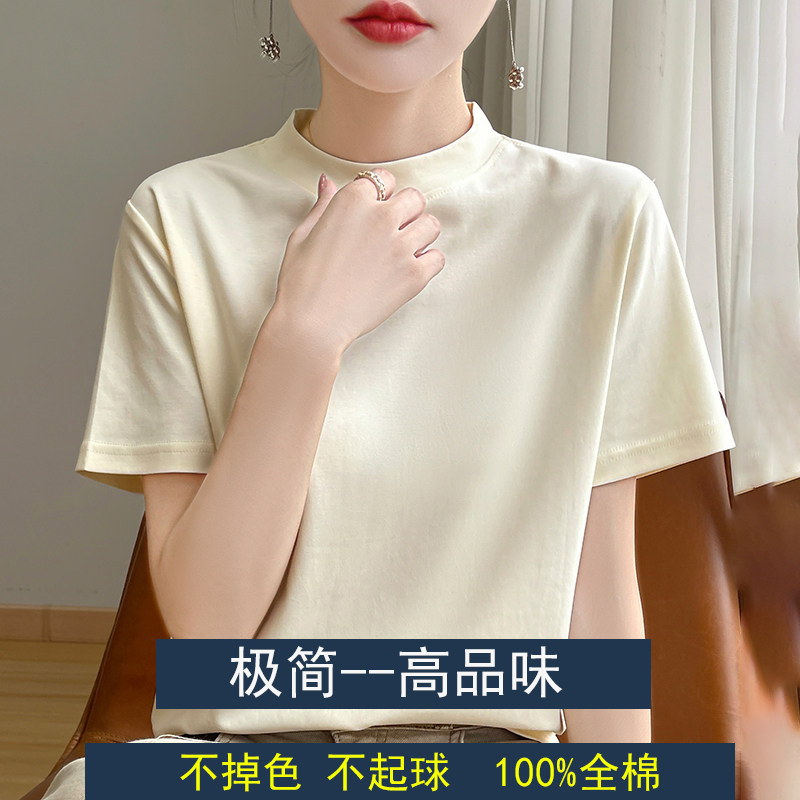 纯色简约百搭气质打底衫 夏季 上衣 t恤女2024新款 100全棉半高领短袖