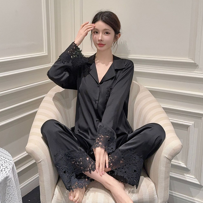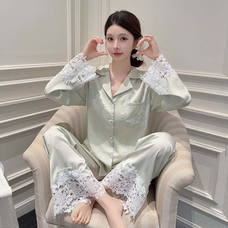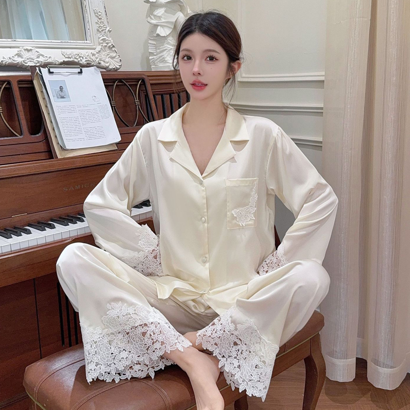 家居服可外穿 冰丝蕾丝花边睡衣女夏高级感甜美长袖 2025新款 春秋季