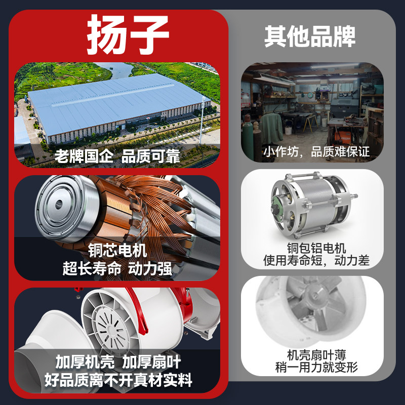 扬子管道风机斜流增压客厅大吸力静音卫生间换气扇厨房排风新风机