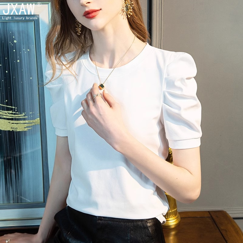 复古泡泡袖 夏季 高级感小众纯棉体恤上衣 t恤女夏2025新款 黑色短袖
