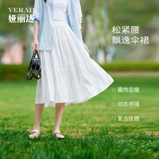 娅丽达拼接松紧腰白色春夏半身裙女小个子长裙 白月光蛋糕裙
