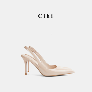 红底漆皮尖头浅口性感裸色工作单鞋 黑色高跟鞋 女细跟2025春秋新款