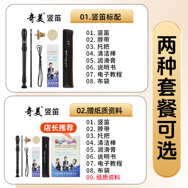奇美黑霸王英式 小学生用八孔儿童初学笛子 b竖笛8孔高音巴洛克德式