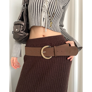 短裙配饰皮带棕色 复古高级时尚 麂皮韩版 辣妹宽腰带女2026春夏新款