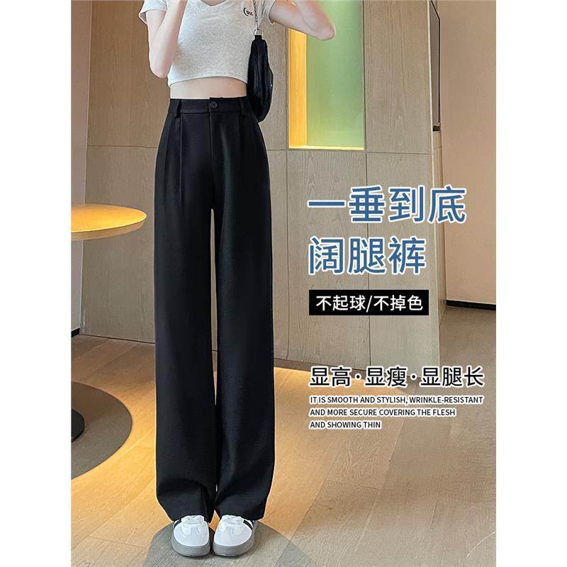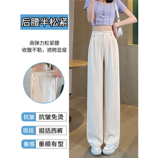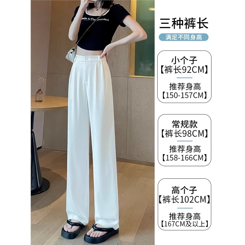 裤 休闲腿裤 高级窄西装 夏季 不女白色直筒小个子垂感透阔感冰丝 子版