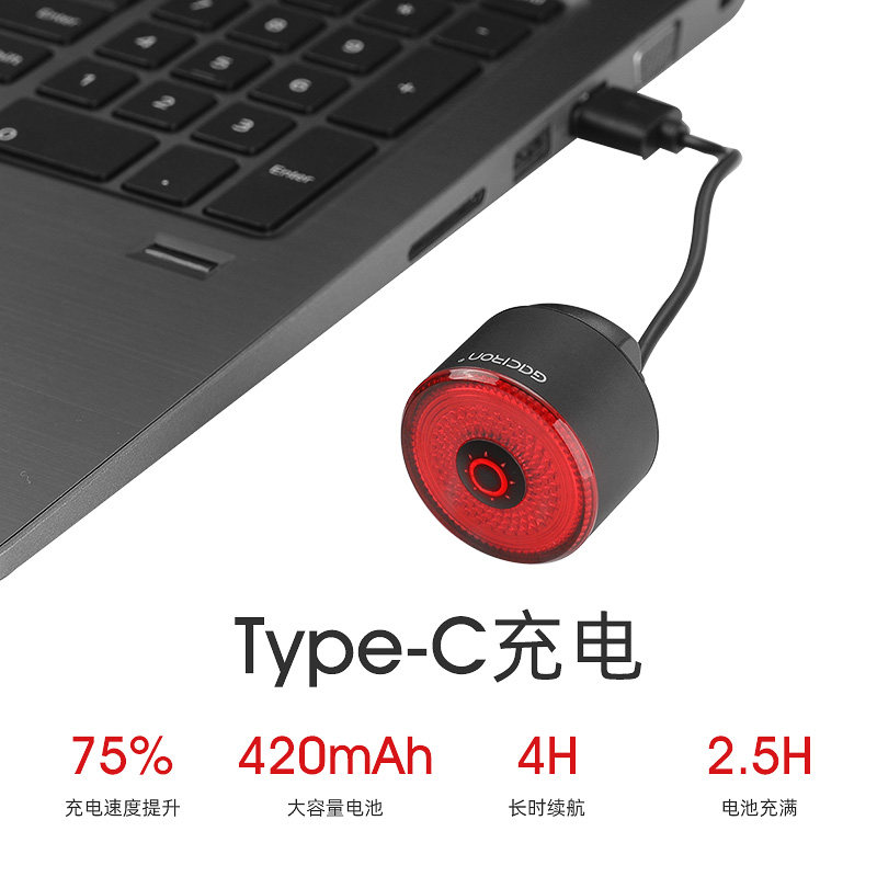 洛克兄弟自行车尾灯智能感应刹车灯山地公路车夜骑警示灯骑行装 备