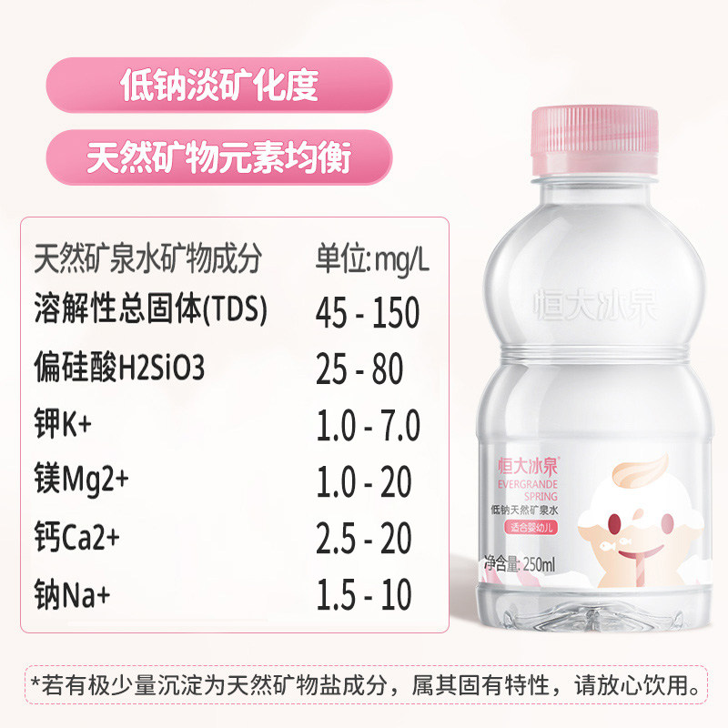 恒大冰泉婴儿水天然低钠矿泉水250ml 12瓶宝宝儿童矿泉水小瓶