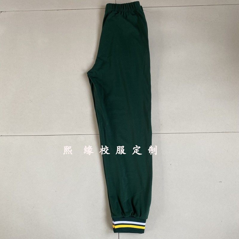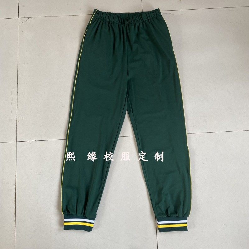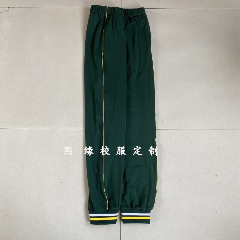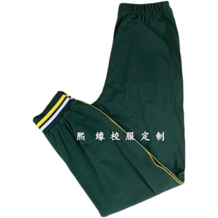 黄白条纹收口纯棉运动校裤 校服长裤 初高中小学 墨绿色四季 定制新款