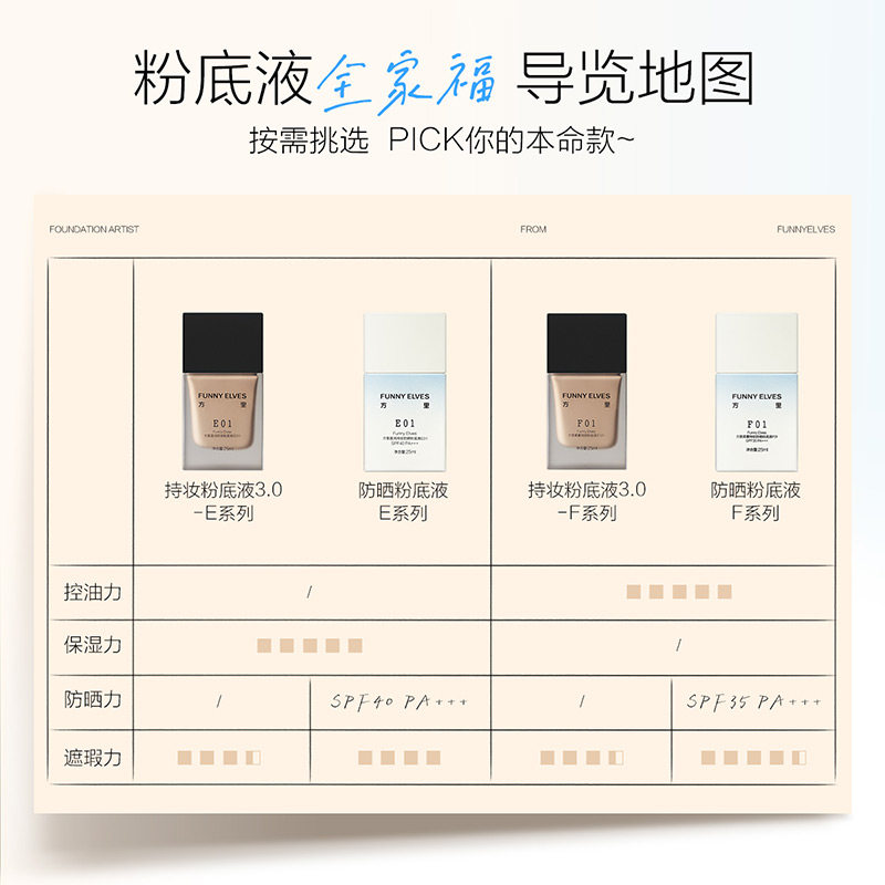 FunnyElves方里防晒粉底液轻薄服帖遮瑕持久不脱妆持妆油皮spf35