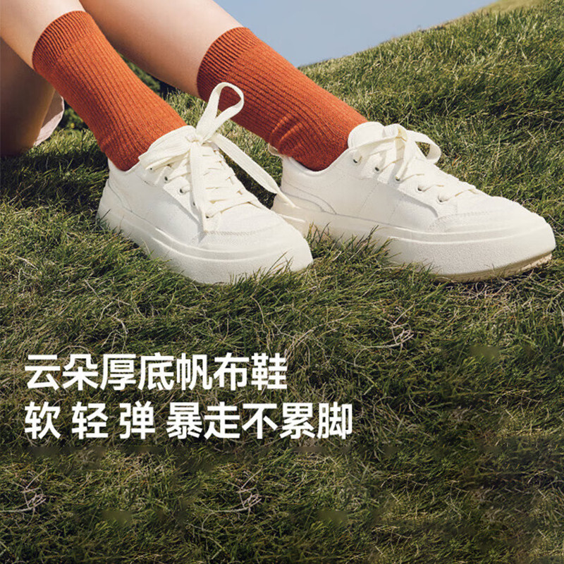 一脚蹬休闲运动鞋 蕉下小白鞋 厚底增高低帮百搭复古帆布鞋 板鞋 女款