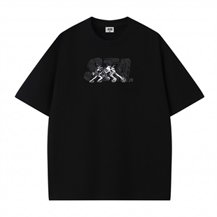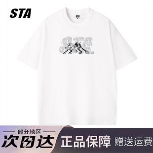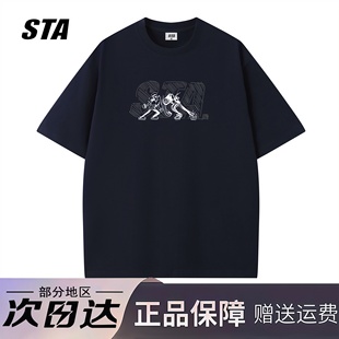 STA旗舰店美式 男女潮牌高街复古重磅纯棉情侣宽松T恤 格斗印花短袖