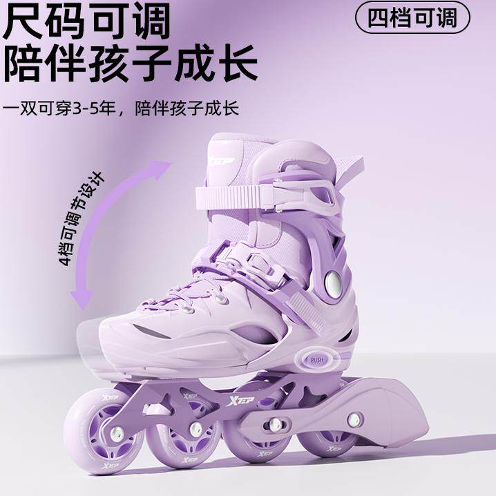 10岁直排轮 女男童初学者滑轮滑冰旱冰男孩3 特步儿童轮滑鞋 溜冰鞋