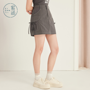 户外穿搭蝴蝶结包臀辣妹a字半身裙 风灰色短裙女夏季 紫涵美式 工装