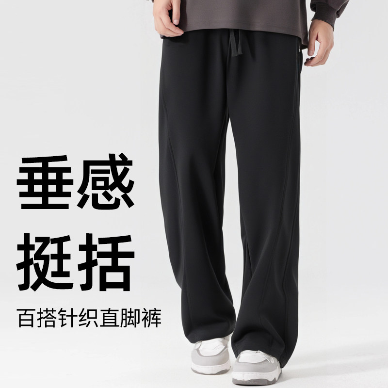 小众美式 秋冬加绒重磅卫裤 弯刀裤 男士 班尼路裤 宽松运动裤 子男款