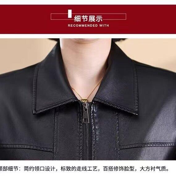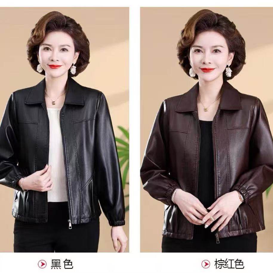 洋气PU皮上衣 时尚 2026新款 皮衣女外套妈妈春秋休闲夹克中老年女装