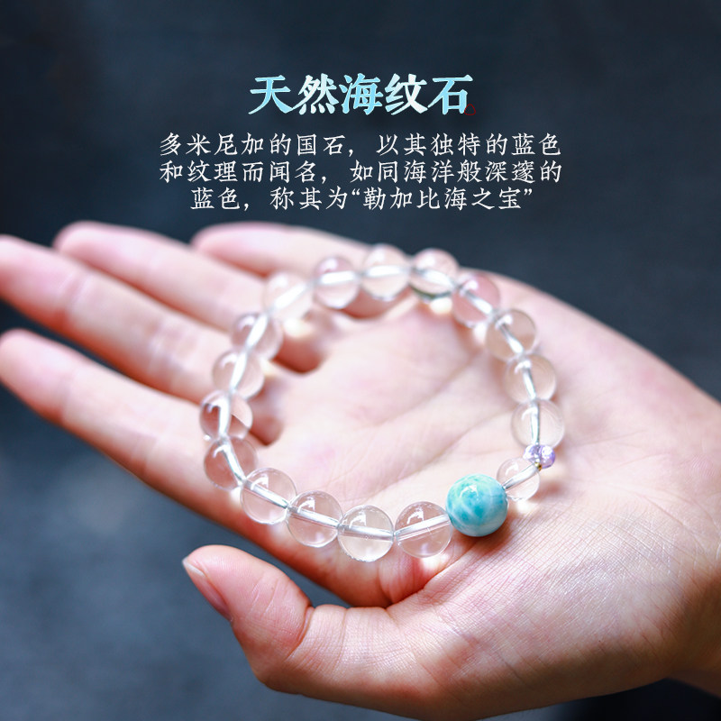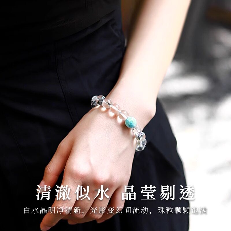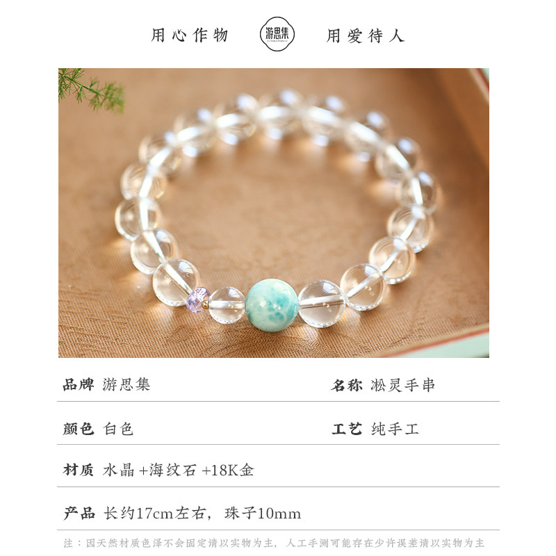 游思集新款 上市优质精品凇灵手串巴西超七白水晶海纹石18k金链女