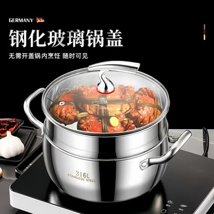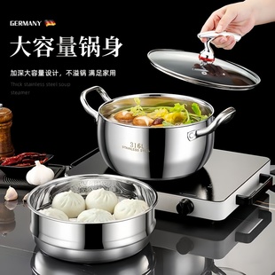 加厚316L不锈钢汤锅家用苹果锅蒸锅耐高温燃气电磁炉通用大容量