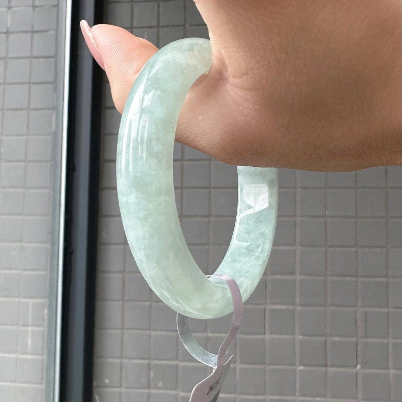 老凤祥猫眼石手镯女白月光镯子宽条白透冰透手镯生日礼物送女友