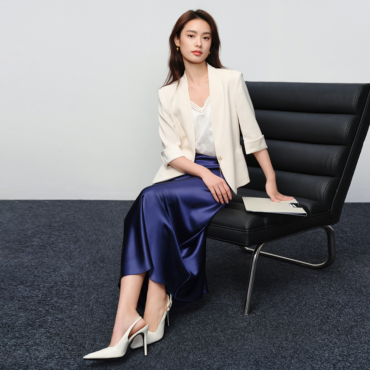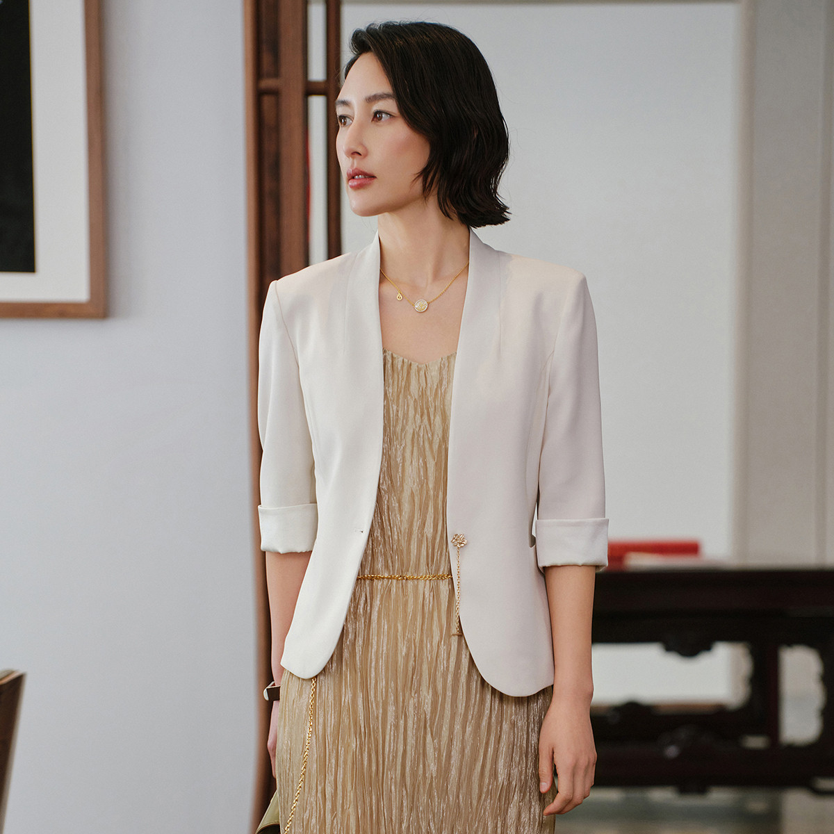 修身 五分袖 白色西装 外套 1102A EP雅莹女装 2025新款 真丝短款