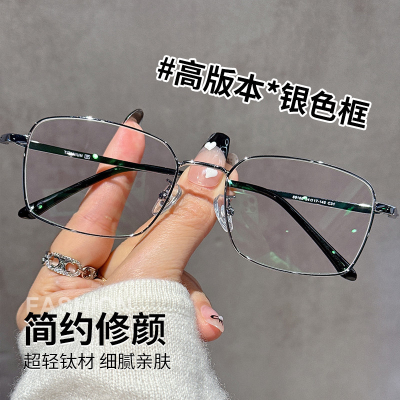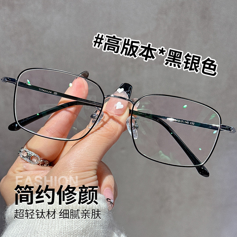 金丝边近视眼镜男式 可配有度数超轻纯钛方形小脸女士眼睛框防蓝光