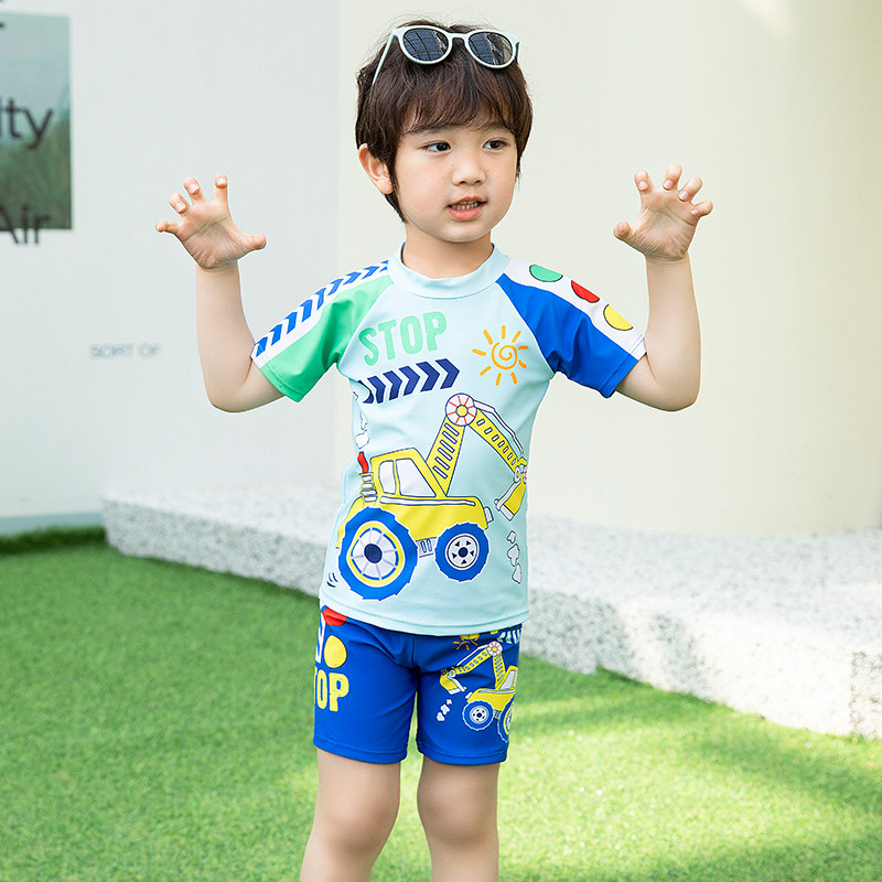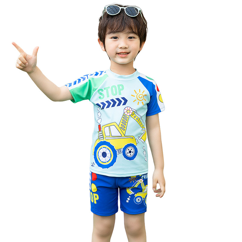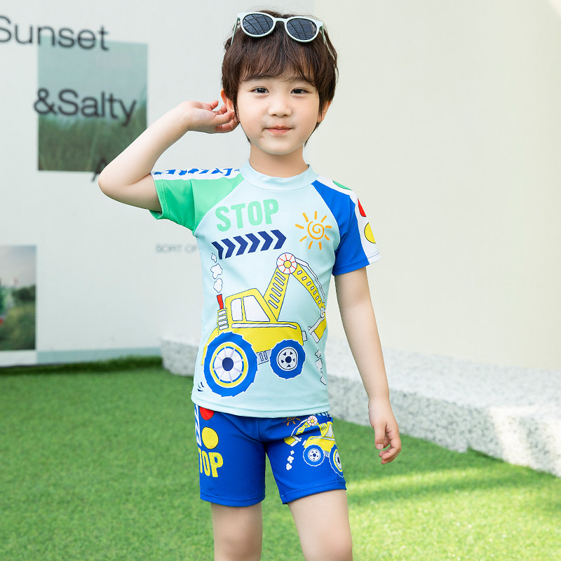 儿童男童泳衣分体卡通小汽车男孩速干幼儿中小童海边度假游泳套装