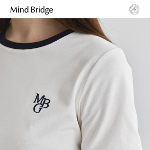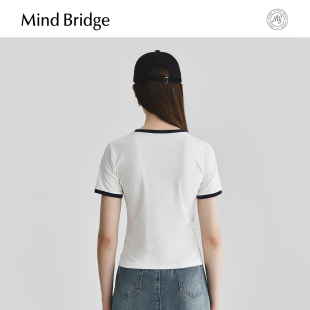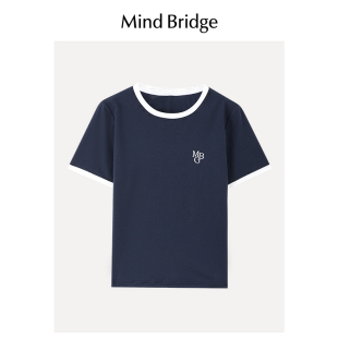 女士撞色简约纯色T恤圆领刺绣半截袖 设计感短袖 MindBridge夏季