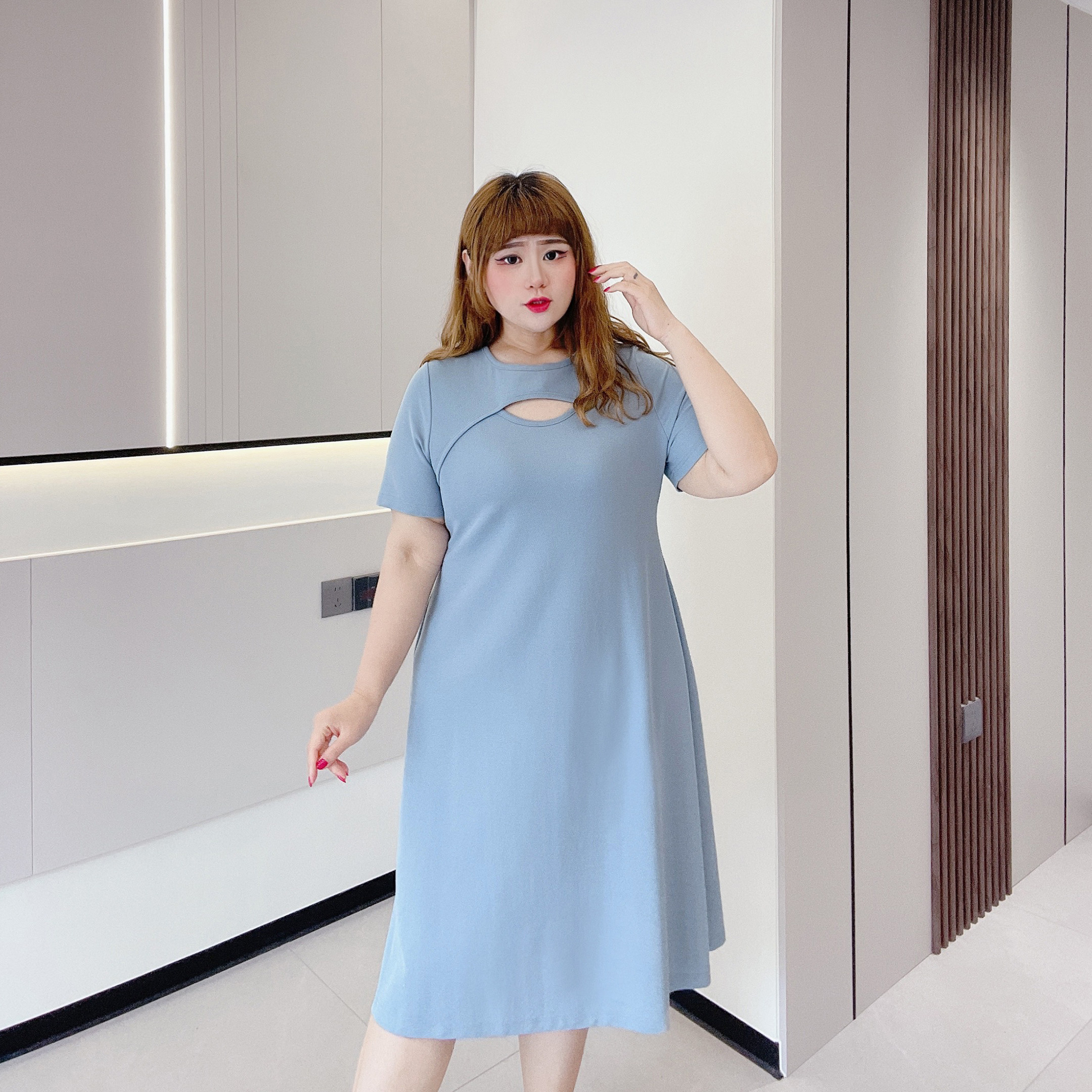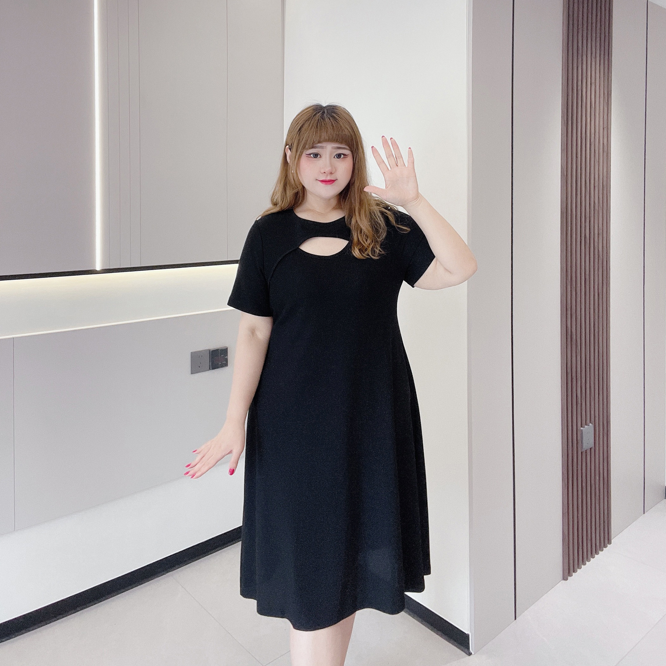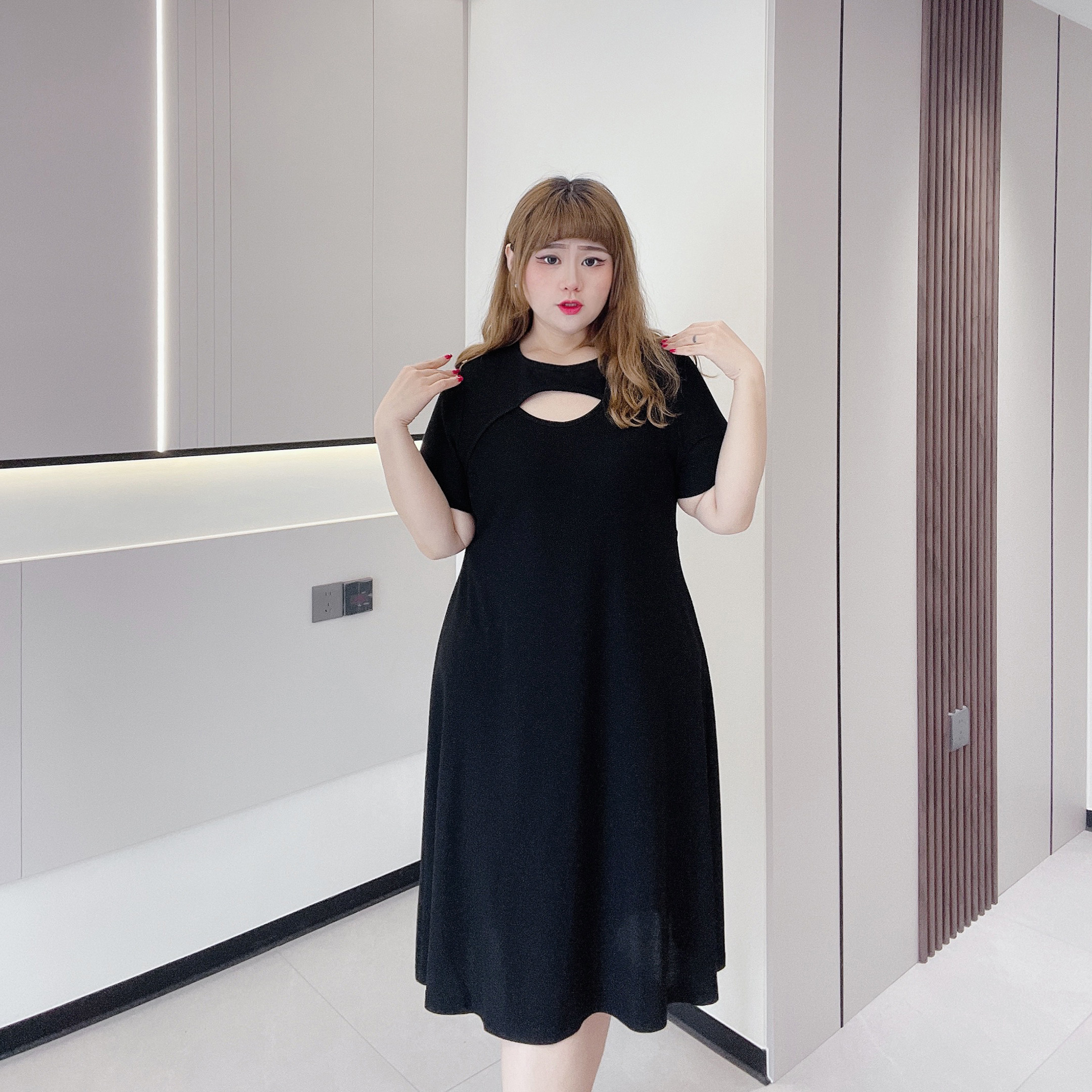 潮简约设计感镂空性感遮肉显瘦连衣裙 胖mm韩版 300斤特大码 女装