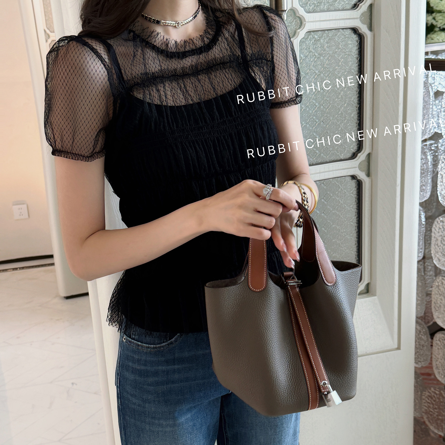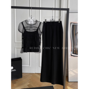 高阶气质温柔 浪漫蕾丝黑纱两件套上衣女 RUBBIT春夏新品 法式