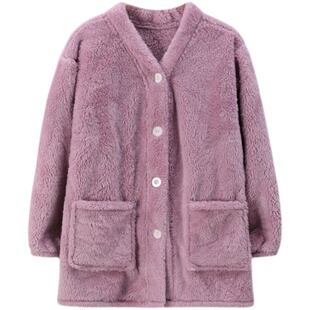 双面珊瑚绒睡衣女冬季 200斤摇粒绒外套 加厚加绒保暖单件上衣大码
