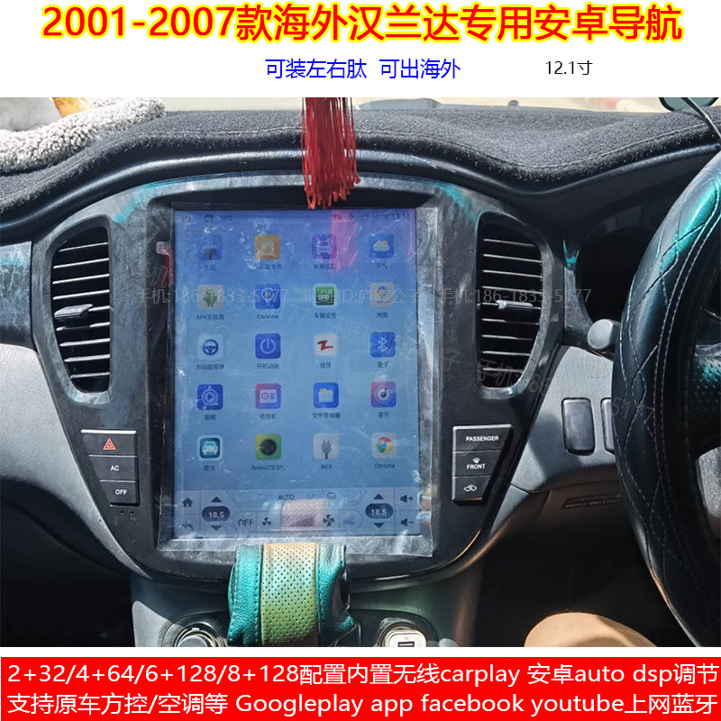 适用01 海外丰田汉兰达安卓大屏车机智能导航仪一体机carplay 07款