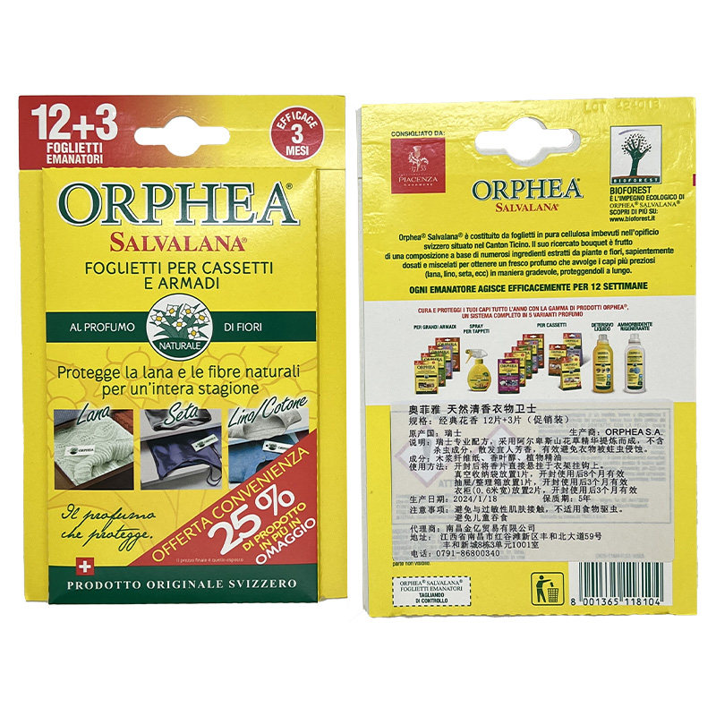 瑞士orphea奥菲雅香片羊毛羊绒防蛀雪松木片衣物防霉防蛀虫天然