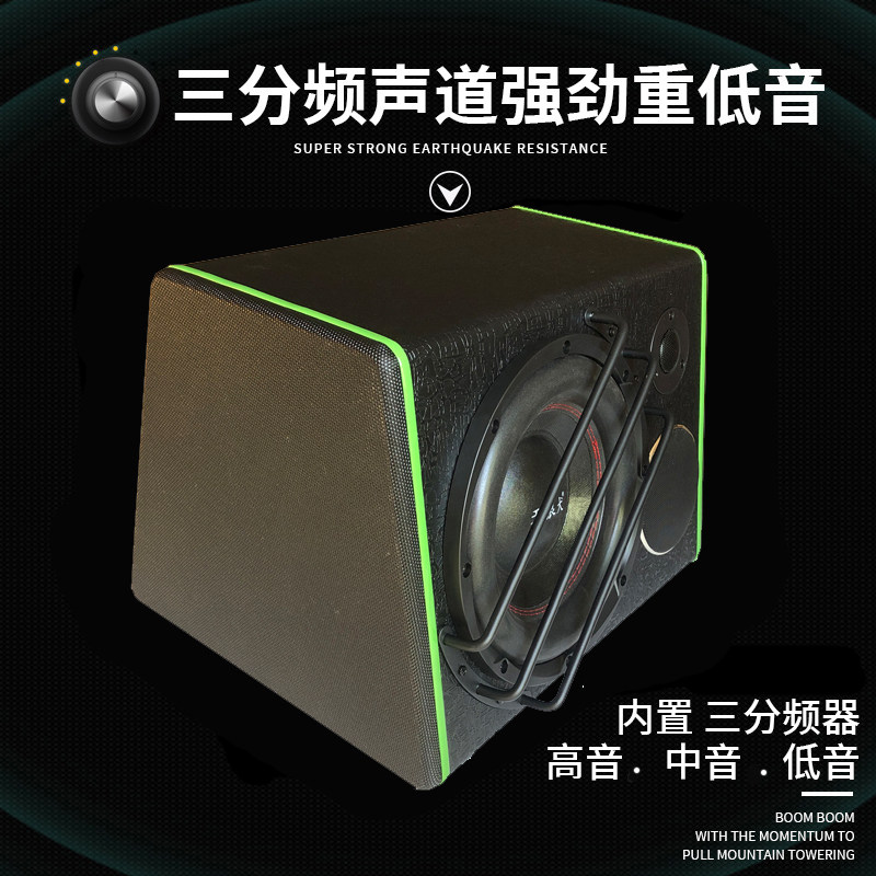 120磁10寸梯形三分频12V汽车载有源低音炮24V插卡蓝牙音响220V箱