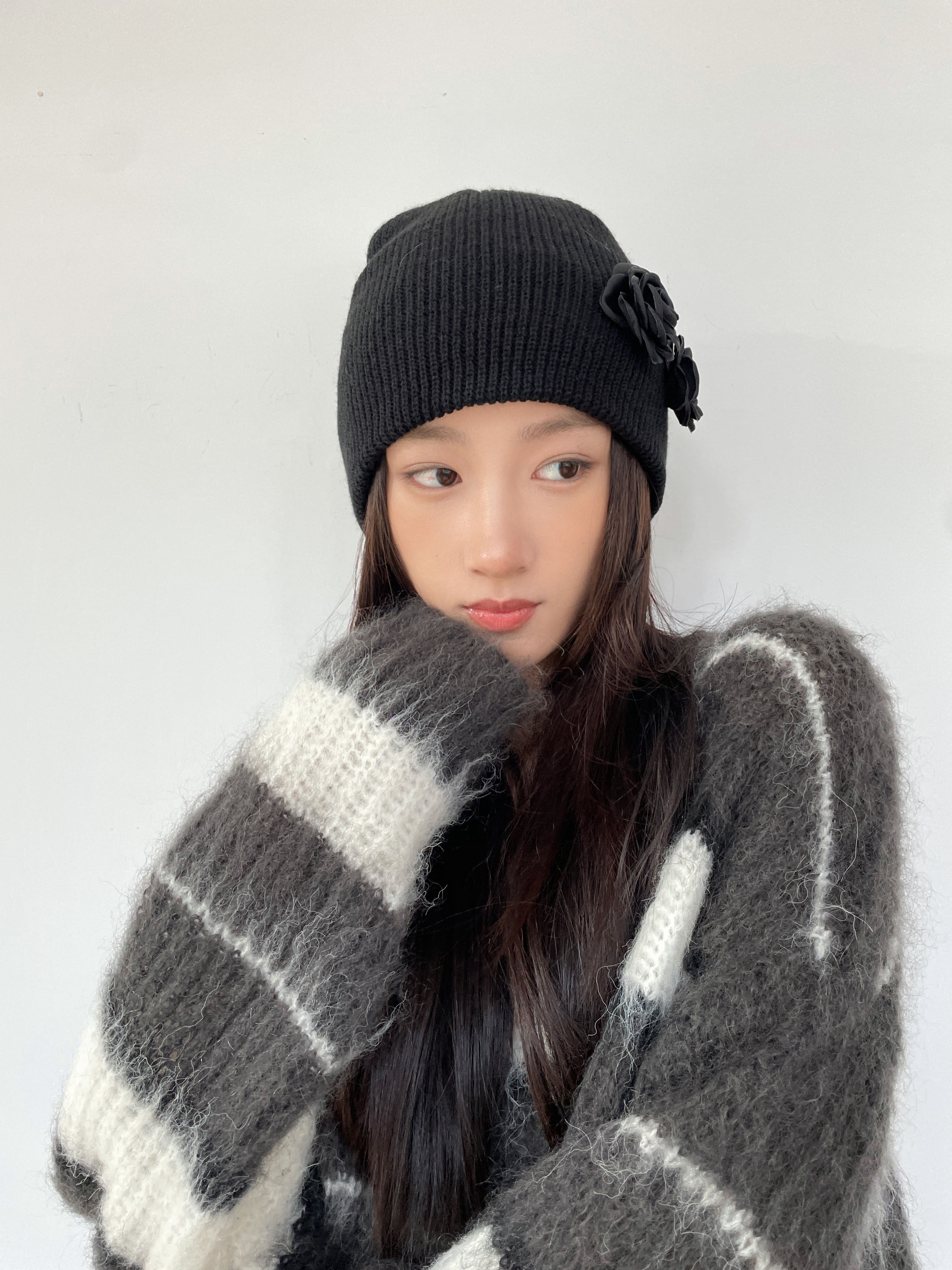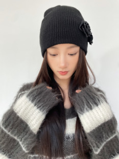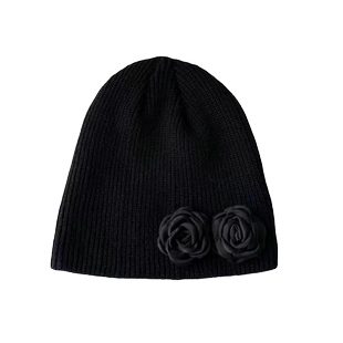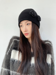复古时髦小众设计黑色花朵针织帽y2k亚文化辣妹毛线帽金泫雅同款