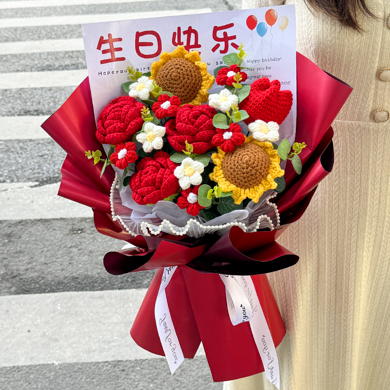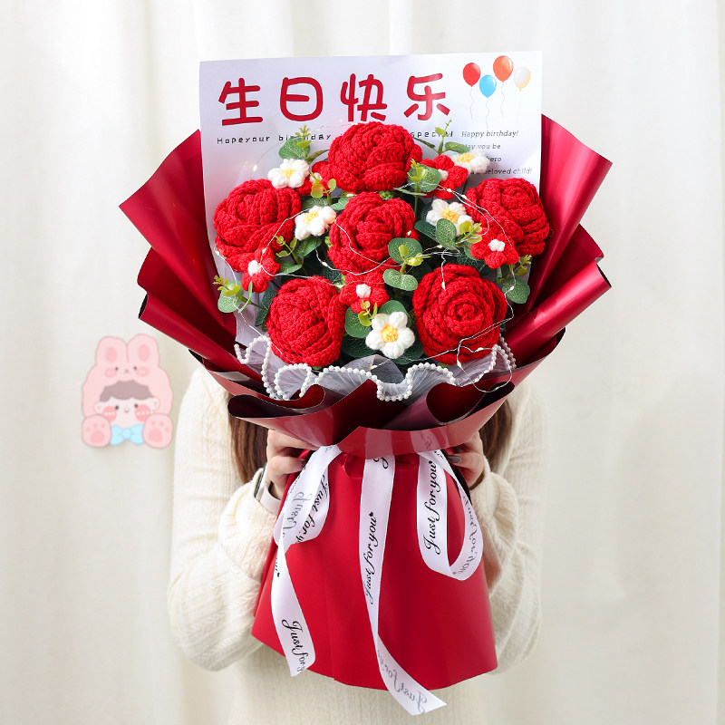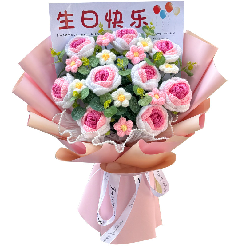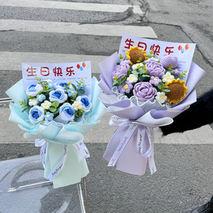 创意生日礼物创意成品针织玫瑰花编织毛线花成人礼高级送女友闺蜜