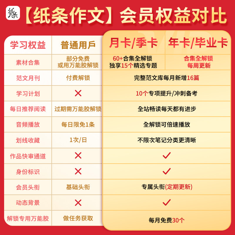 卡 季 年卡毕业卡作文纸条VIP充值 纸条作文APP会员月卡 官方直充